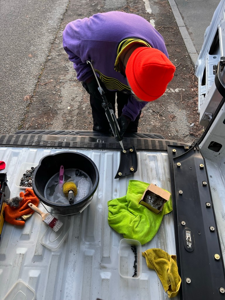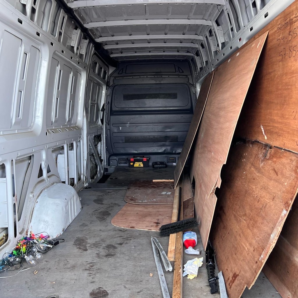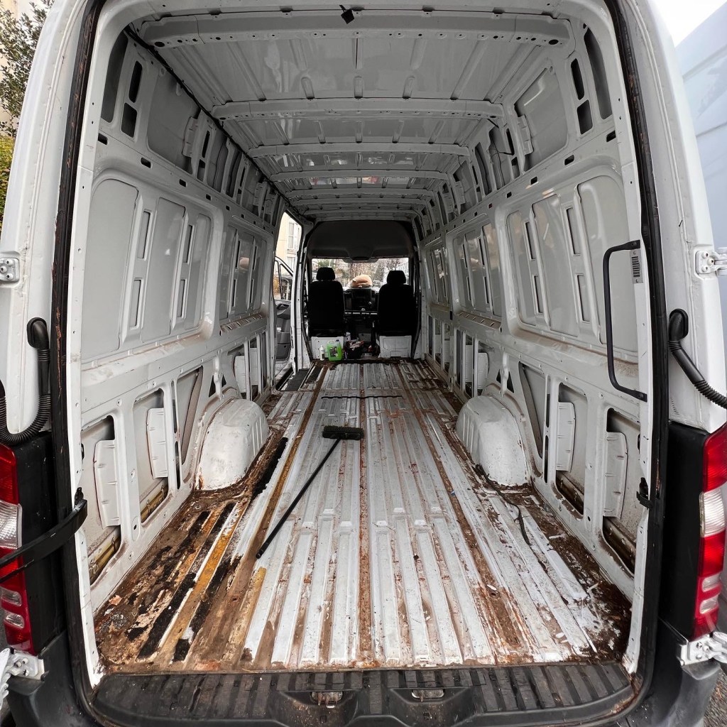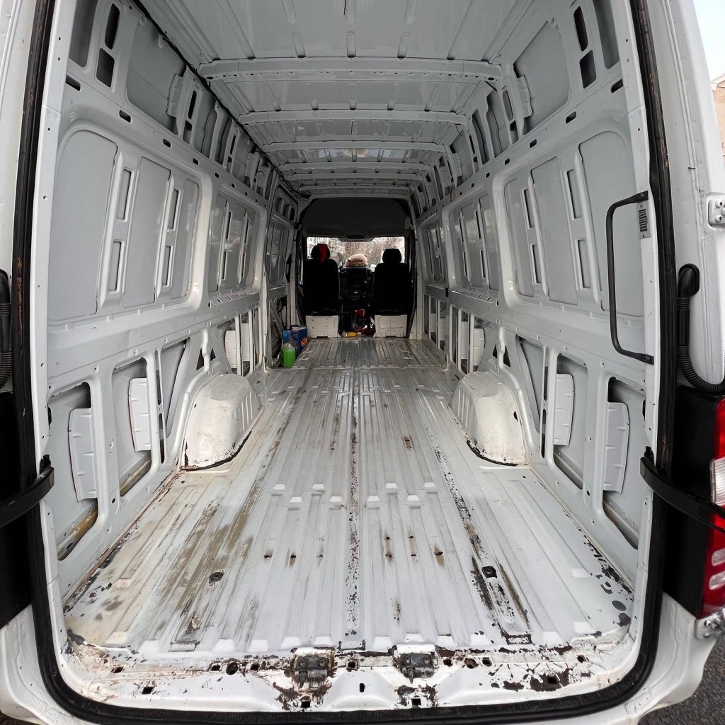 Do you know what they don’t tell you at the beginning of a van conversion? How much F**king cleaning there is! And how much it costs to get different things to clean different bits. There is a lack of tutorials on what to do and what to buy and best things blah blah so going into this blind cost me an unnecessary amount of money and a HUGE load of time. I’m talking like 3/4 weeks where I would get home after work and slave away for the hour and a half I had before it was dark. My weekends consisted of cleaning and I don’t think I had a day off for a good month, maybe 2? After plenty of elbow grease, metal scrunchies, and blue roll. The van was FINALLY stripped and cleaned. The walls were bare and white. All bits of rust were wiped down, treated with a cleaner then blasted with some Hammerite. God was I happy to see the back of this stage.