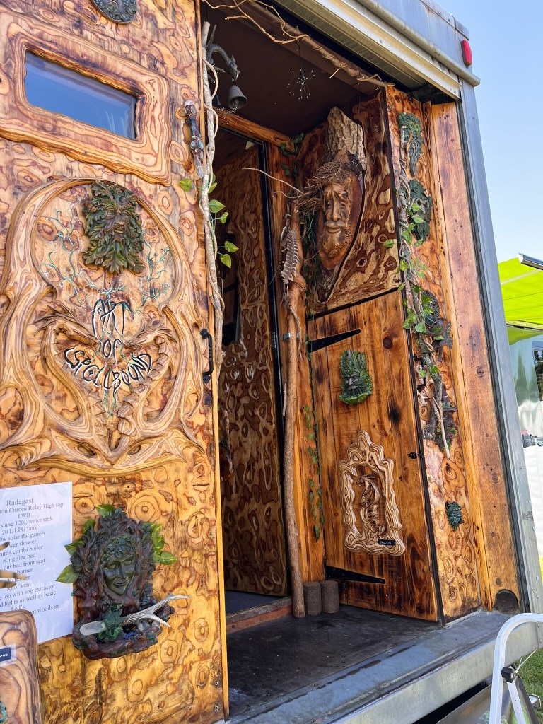 After our magical morning, we headed back towards the hustle and bustle and started by exploring the Field of Dreams where a number of Vans showed off their builds and creations. My personal favourite was the Radagast Van. Absolutely incredible creativity and imagination with a truly fantastic skill to pull off such an amazing build. I can only dream of making something so amazing. There were a number of Vans that really were incredible. Tiny homes on wheels to huge RVs and horse boxes. There was every style, every idea, and every size you could imagine. I would love to sit inside the mind of some people and see how their creative brain works to pull off some jaw-dropping builds.